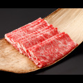 ※写真はイメージです。 高級部位の一つであるリブロースは、上品な脂ととろけるような舌ざわりが特徴です。とりわけ松阪牛の華やかな香りと旨みをご堪能いただけます。さらに、柿安の熟練した職人がしゃぶしゃぶに適した肉の厚みを追求し、1枚1枚丁寧にご用意しています。